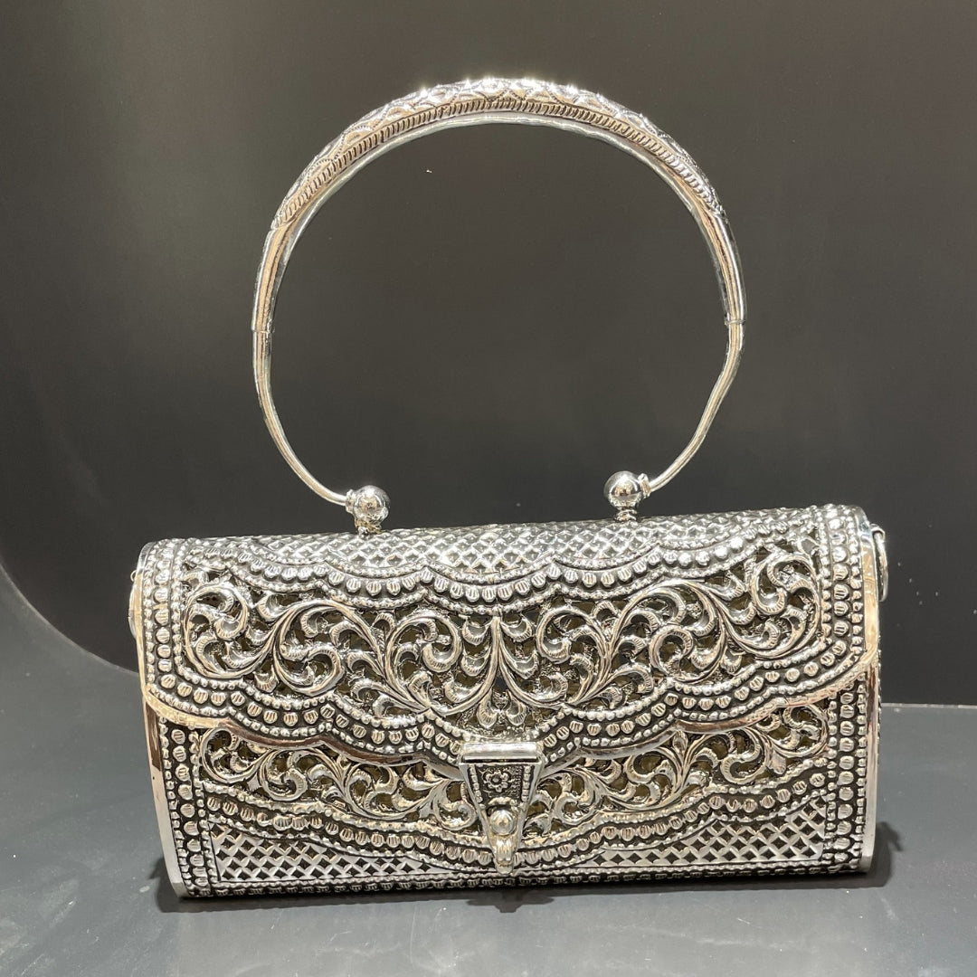 The Elegant Antique Silver Purse from Maharani by Rungtas is the perfect accessory for those who appreciate classic beauty. With its intricate silver detailing and graceful design, this purse adds a refined touch to any outfit. Its small size makes it ideal for special events or elegant evenings. Enhance your style with this sophisticated antique silver purse, a blend of elegance and practicality.