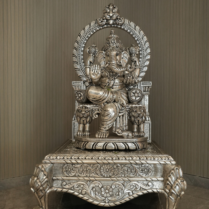 Bring home blessings and prosperity with this Lord Ganesh Silver Idol, crafted from high-quality silver. Known as the remover of obstacles, Lord Ganesh is the perfect deity for pooja ceremonies, festivals, and daily worship. This intricately designed idol radiates peace and spiritual positivity, making it a beautiful addition to your home decor. Whether you're celebrating a festival or seeking divine guidance, this Lord Ganesh Silver Idol symbolizes success, wisdom, and good fortune.
