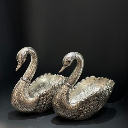 Elevate your dining experience with our Antique Silver Swan Fruit Basket. Crafted with precision and adorned with intricate details, this timeless piece adds a touch of sophistication to any table setting. Ideal for serving fruits or as a decorative centerpiece. Embrace the artistry of 999 pure silver quality. A perfect choice for silver items gifts, making every occasion special.