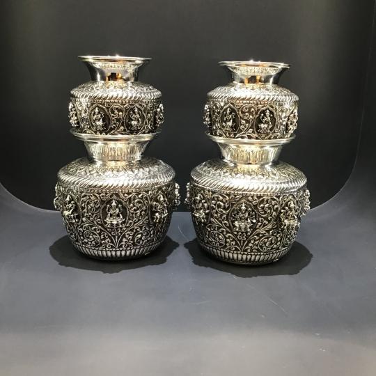 Bring divine blessings into your home with the Pure Ashtalakshmi Kamdhenu from Maharani by Rungtas. This beautiful silver cow features the Ashtalakshmi, the eight forms of Goddess Lakshmi, symbolising prosperity and success. Perfect for your pooja space or as a meaningful gift, this Kamdhenu adds a touch of elegance and spiritual significance to any room.